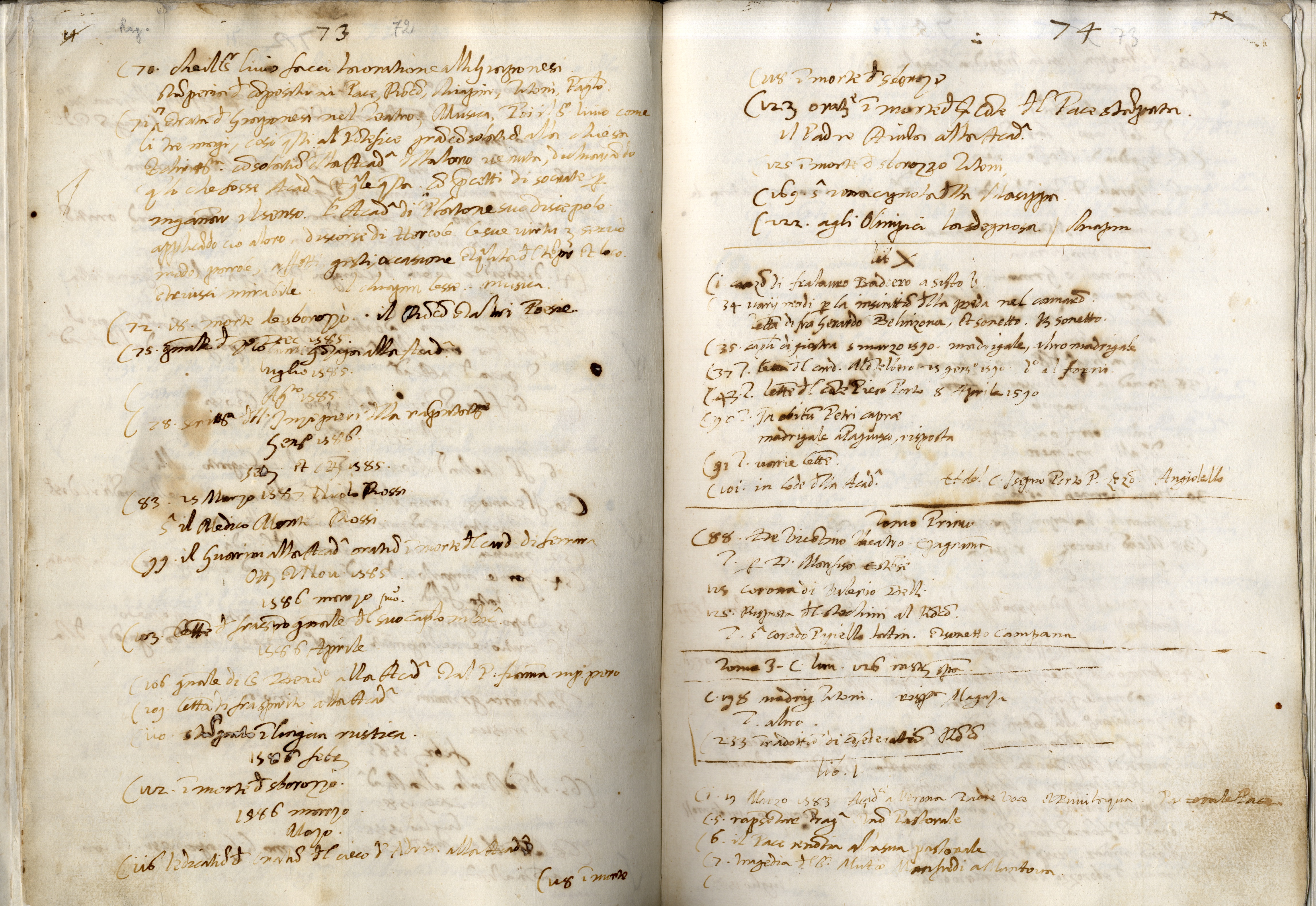 AO b1 f1 libro segnato A, p. 72 – nota sulla relazione inviata da Ingegneri sulla rappresentazione, agosto 1585